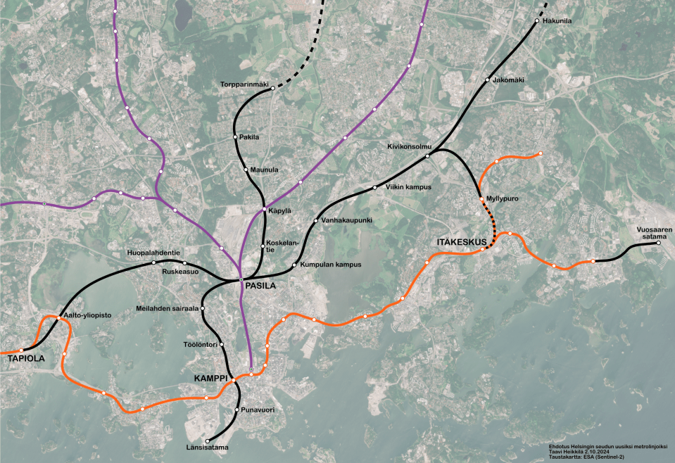 Tasuta ühisliiklus ei rõõmusta neid kellele vajalik sõit linnaliikluses kestab nüüd liiga kaua või sõiduplaan ei sobi. Et võimalikult paljudel oleks võimalik tasuta liiklust kasutada, peab ühisliiklust edasi arendama. Kõige efektiivseim transpordiliik pealinnaregioonis oleksid uued metrooliinid. Helsingi peab alustama uute metrooliinide projekteerimisega, mis looksid alternatiivse ühenduse Itäkeskusesse ja integreeriks Helsingi Läänesadama ja Vuosaare sadama nüüdse metroo- ja rongiliinidega. (All on minu ettepanek uuteks metooliinideks.)